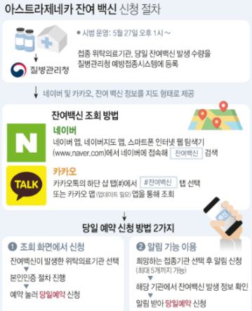 만 30세 이상 국민 잔여백신 예약은 예비명단이 아닌 네이버와 카카오앱을 통해서 당일 예약 접종만 가능하다고 합니다.