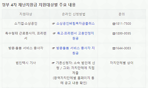 | 특수형태 근로종사자, 프리랜서 | ☞ 특고·프리랜서 고용안정지원금 - 링크 |