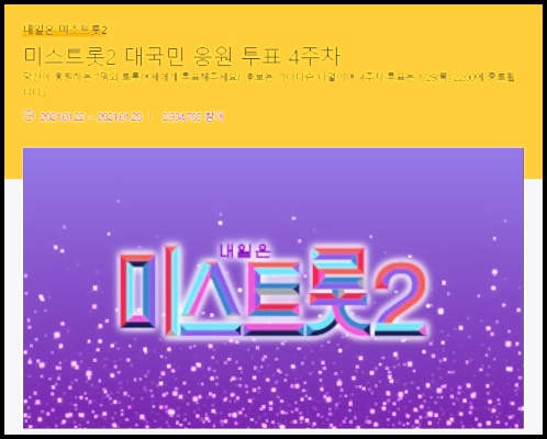 2. 살짝 아래에 있는 미스트롯 2 투표하기 로고를 클릭해주세요!!