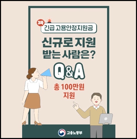 3차 긴급고용안정지원금은 100만원을 지원해준다고 합니다.
