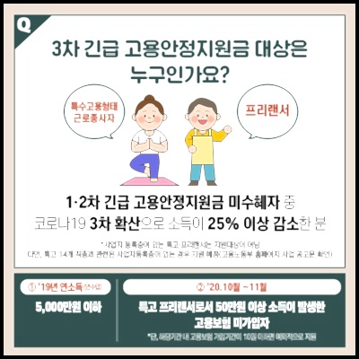 3차 긴급 고용안정지원금은 특수형태근로종사자 및 프리랜서 분들을 위한 지원금입니다.